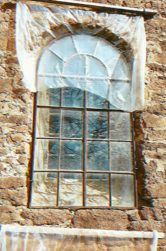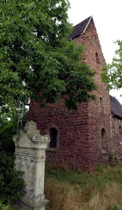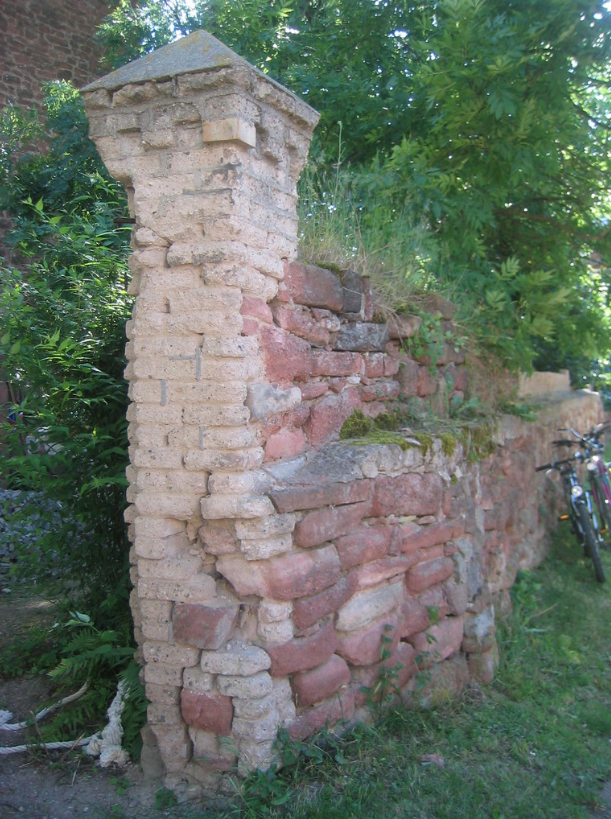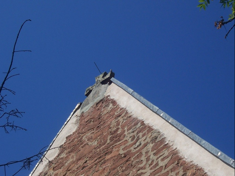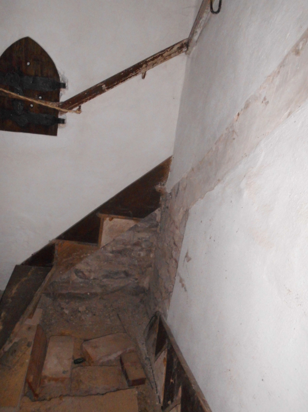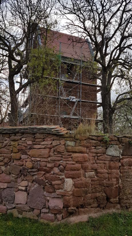 Die Bilder sind von der Süd-West-Seite aufgenommen, doch sieht man auf dem ersten der drei Bilder das Gerüst im Hintergrund. Dieses Gerüst steht an der Nordseite. Das Ergebnis der Notsicherung sieht man auf dem zweiten und dritten Bild.