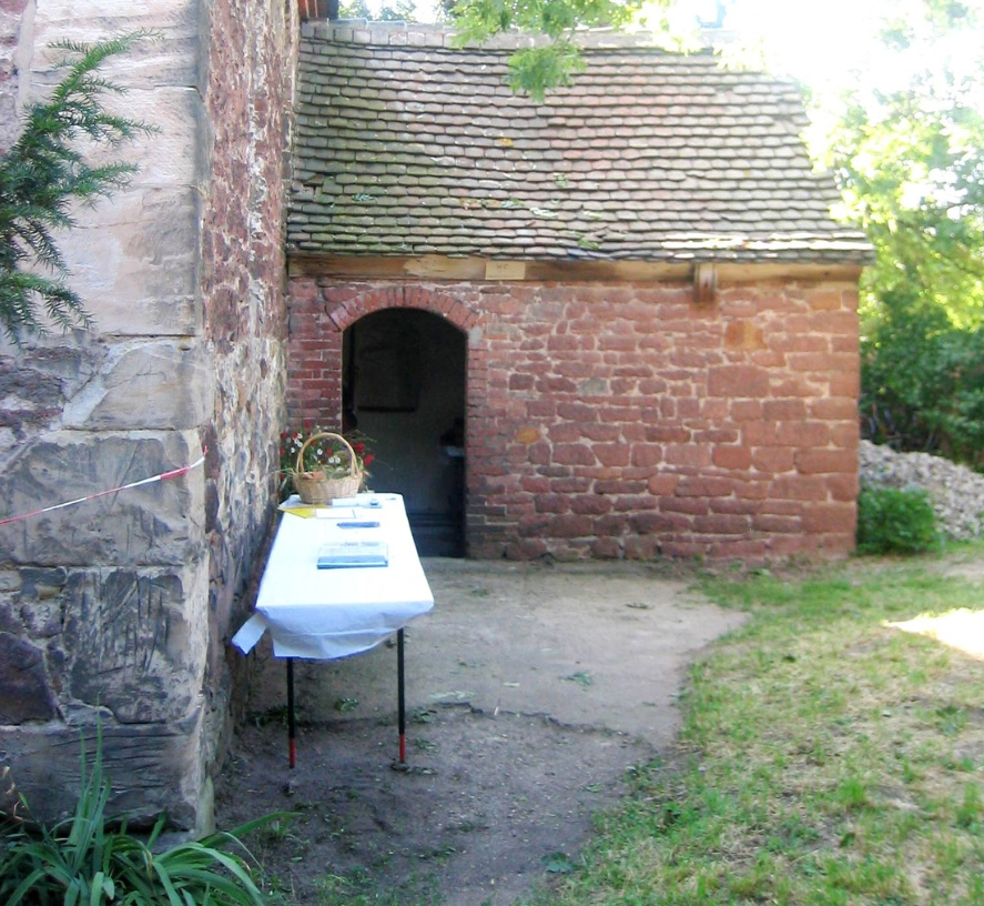 Als eine der ersten Maßnahmen nach Gründung des Fördervereins wurden die historischen Grabsteine an einem trockenen Ort eingelagert, um sie vor weiteren Witterungseinflüssen zu schützen.