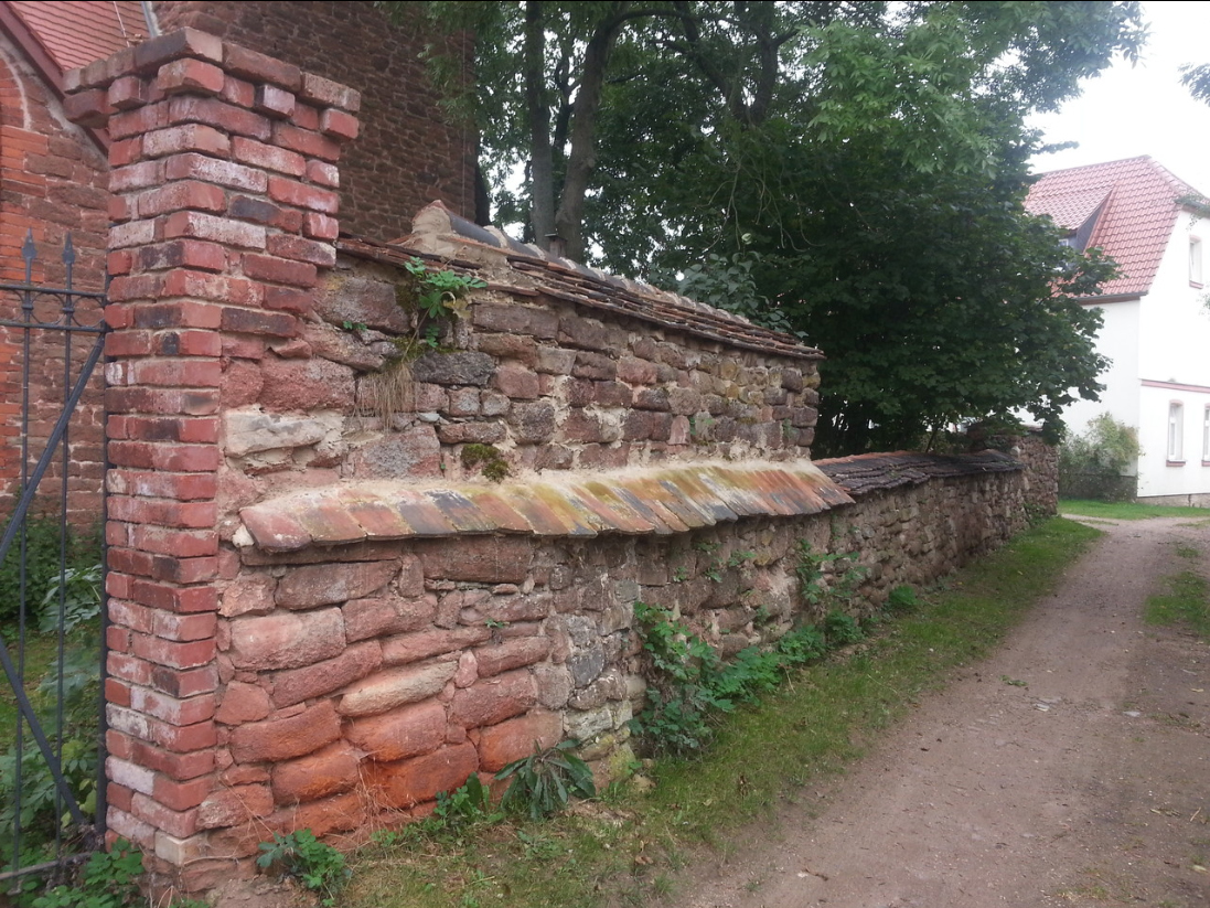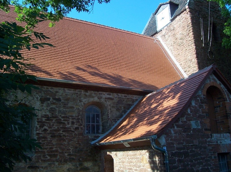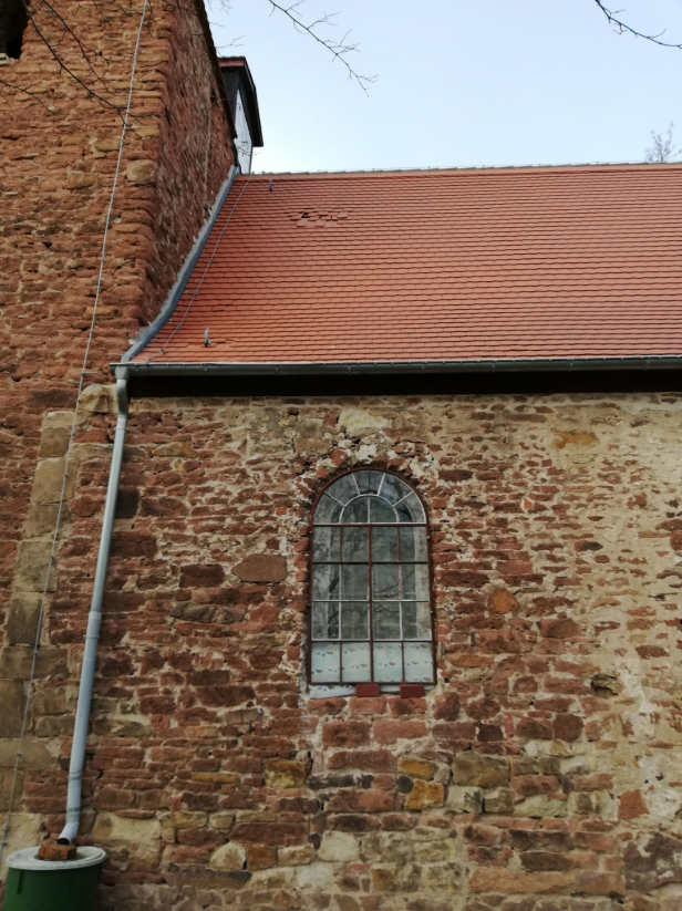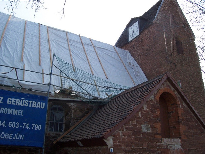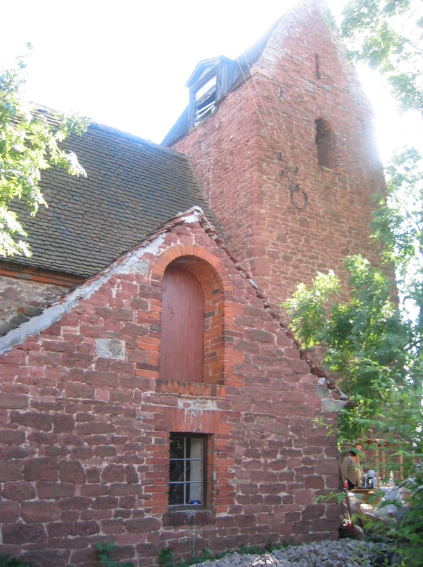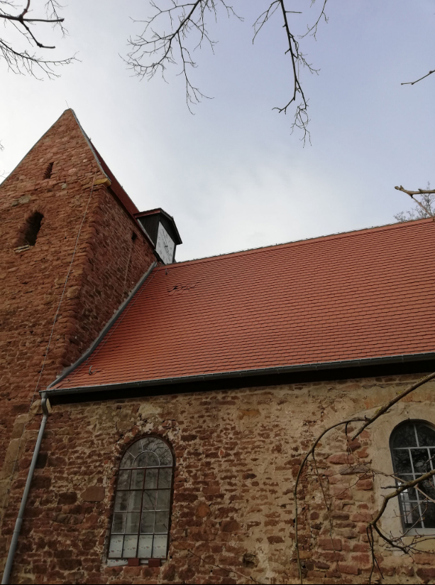 Rotes Dach auf einem denkmalgeschützen Bauwerk? Ursprünglich sollte das Kirchenschiff tatsächlich mit alten Dachzeigeln neu eingedeckt werden. Vor diesem Hintergrund konnte 2006 der Förderverein Dachziegel einer alten Scheune im Ort für die Dachsanierung des Kirchenschiffes sichern und auf dem Kirchengelände lagern. Doch die Entscheidung für alte Ziegel hätte langfristig zu Schwierigkeiten führen können. Welche Lebensdauer haben die alten Dachziegel noch? Woher bei Dachschäden die gleichen alten Dachziegel beziehen? Die Überlegungen mussten langfristig angelegt sein und die gefundenen Lösungen lange halten. So fiel die Entscheidung in Absprache mit dem Denkmalschutz zu Gunsten neuer handelsüblicher Dachziegel aus.