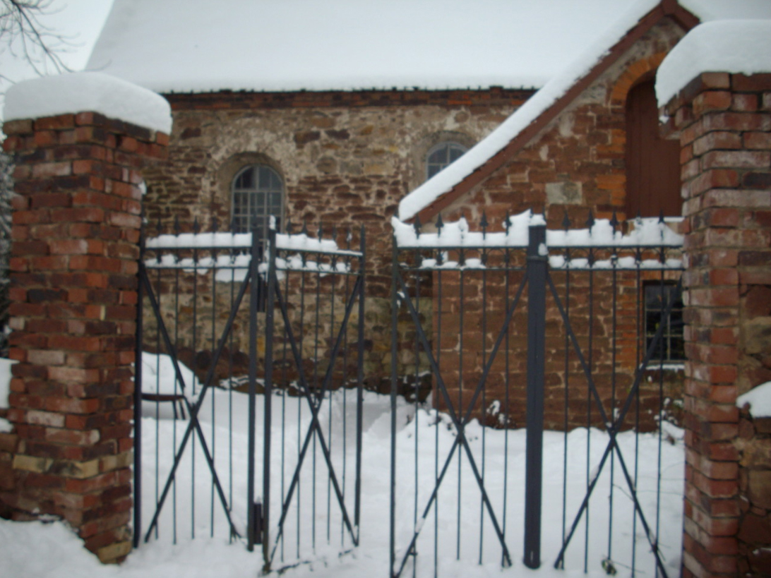- Eingangstor entrostet, gestrichen und wieder eingebaut