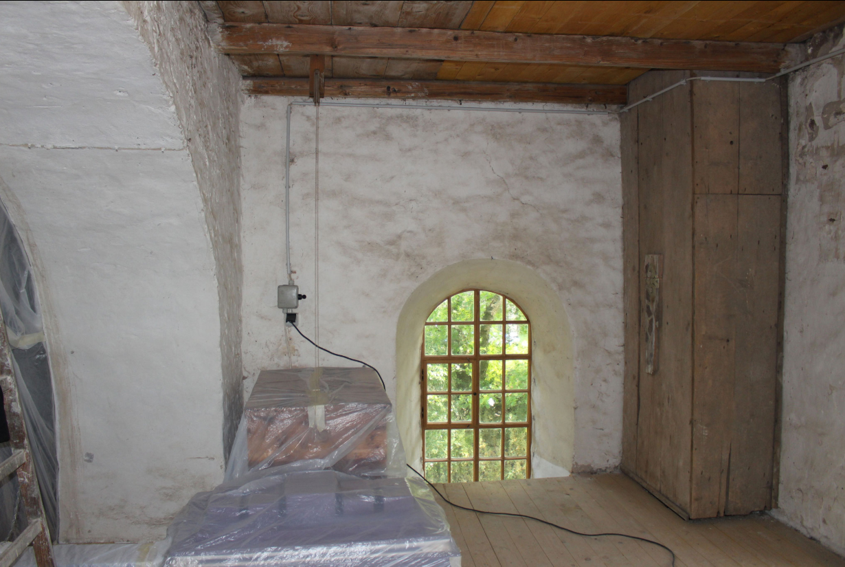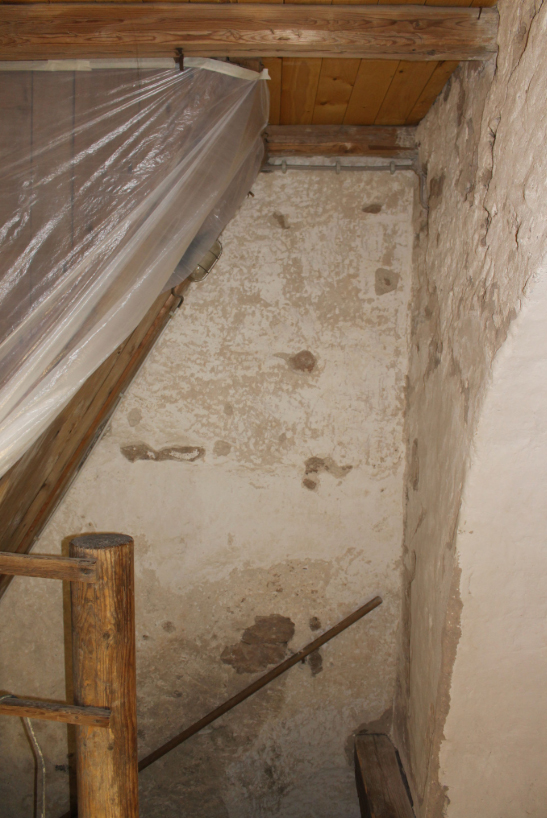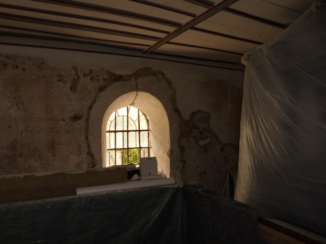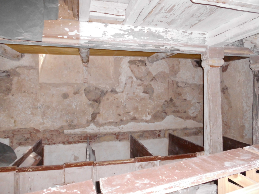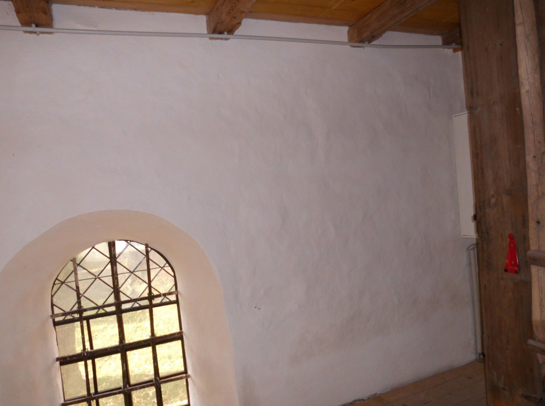 Das Dach ist undicht, es regnet seit längerer Zeit hinein. In der Folge ist der Dachstuhl morsch, Wasser ist ins Mauerwerk eingedrungen, im Kircheninnenraum sind Wasserflecken an den Wänden und der Decke zu sehen.