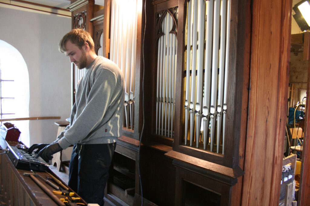 Dass die Orgel wieder spielbar ist, ist Josef Poldrack zu verdanken. Der Orgelbauer, dessen Eltern beide Mitglied der Staatskapelle Halle sind, wuchs in der Saalestadt auf. Er absolvierte eine Orgelbauerlehre in der Werkstatt Ekkehart Groß in Waditz bei Bautzen und ließ sich anschließend in Chemnitz nieder. Mehrfach habe er schon bei einer grundhaften Restaurierung einer Orgel mitgewirkt.