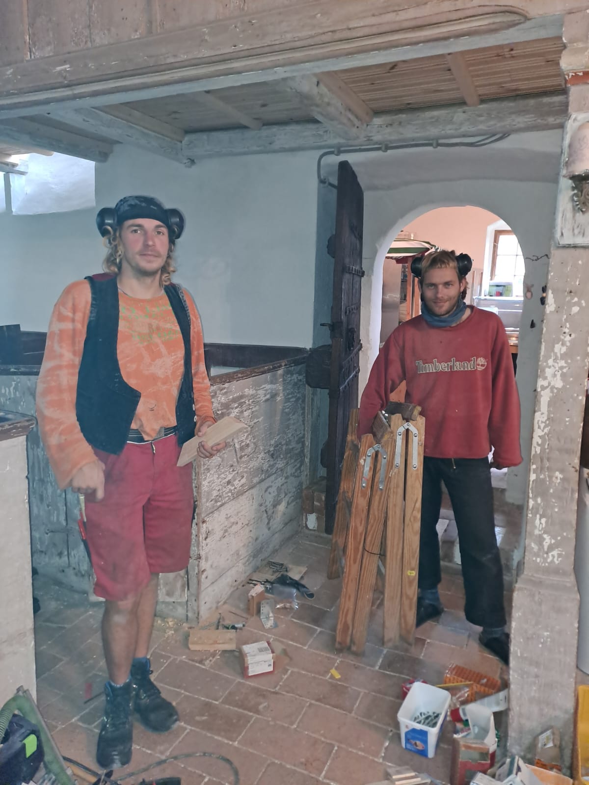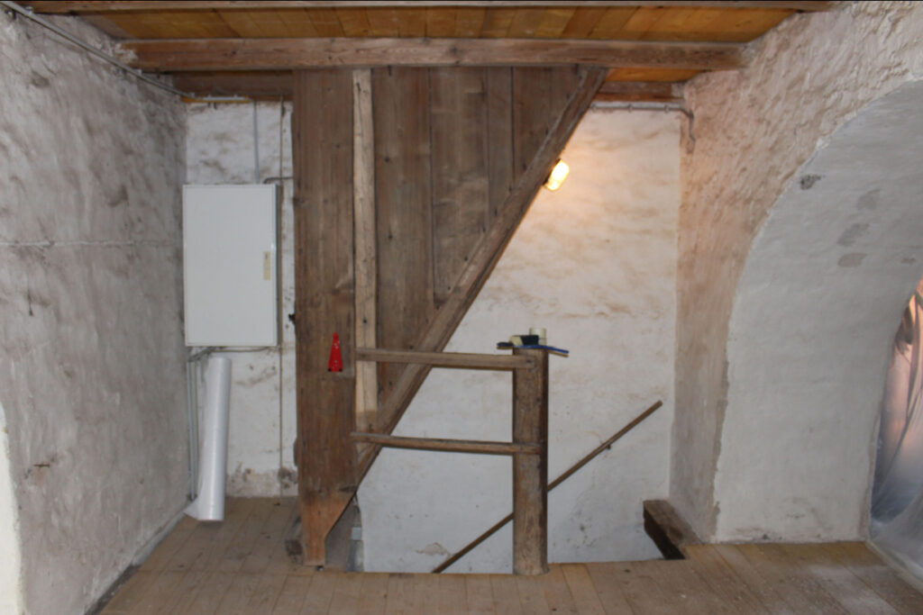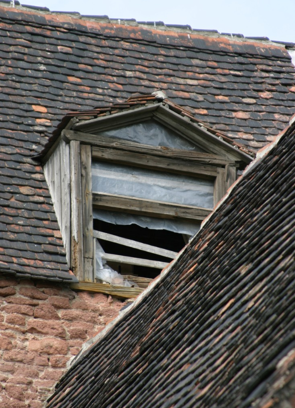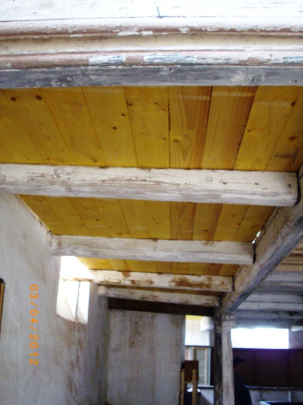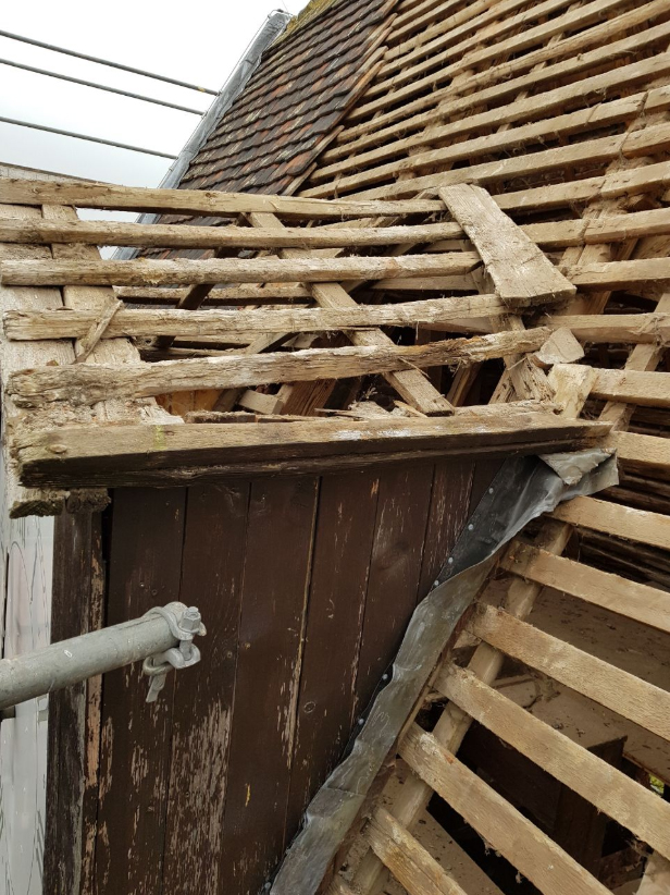 - Dachstuhl des Anbaus wird ausgetauscht und neu mit den alten Ziegeln wieder eingedeckt.