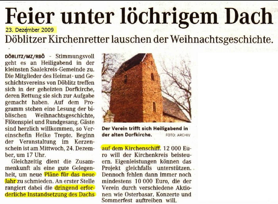 Das Wichtigste ist jedoch, das Dach ist wieder dicht. Der Förderverein hat damit sein dringendstes Ziel erreicht.