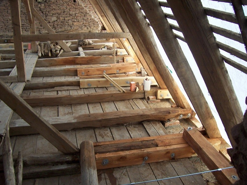 Die Firma Scholz Bau erneuert den Dachstuhl, bevor das Dach neu eingedeckt wird.