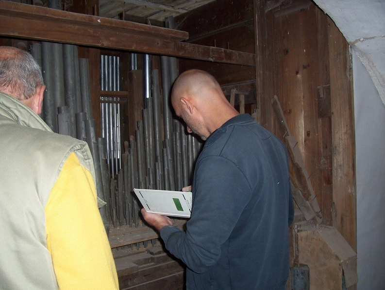 Gut sechs Monate arbeitete er an dem Instrument, alles ganz nach dem historische Vorbild. Es stellte sich allerdings bereits beim Ausbau heraus, dass sich die Orgel nicht mehr ganz im Originalzustand befand, sondern dass einige Sachen verändert worden waren. „Mehr als 40 der insgesamt 353 Pfeifen, gedeckte Holz- wie auch Metallpfeifen, mussten erneuert werden“, erläutert Poldrack.