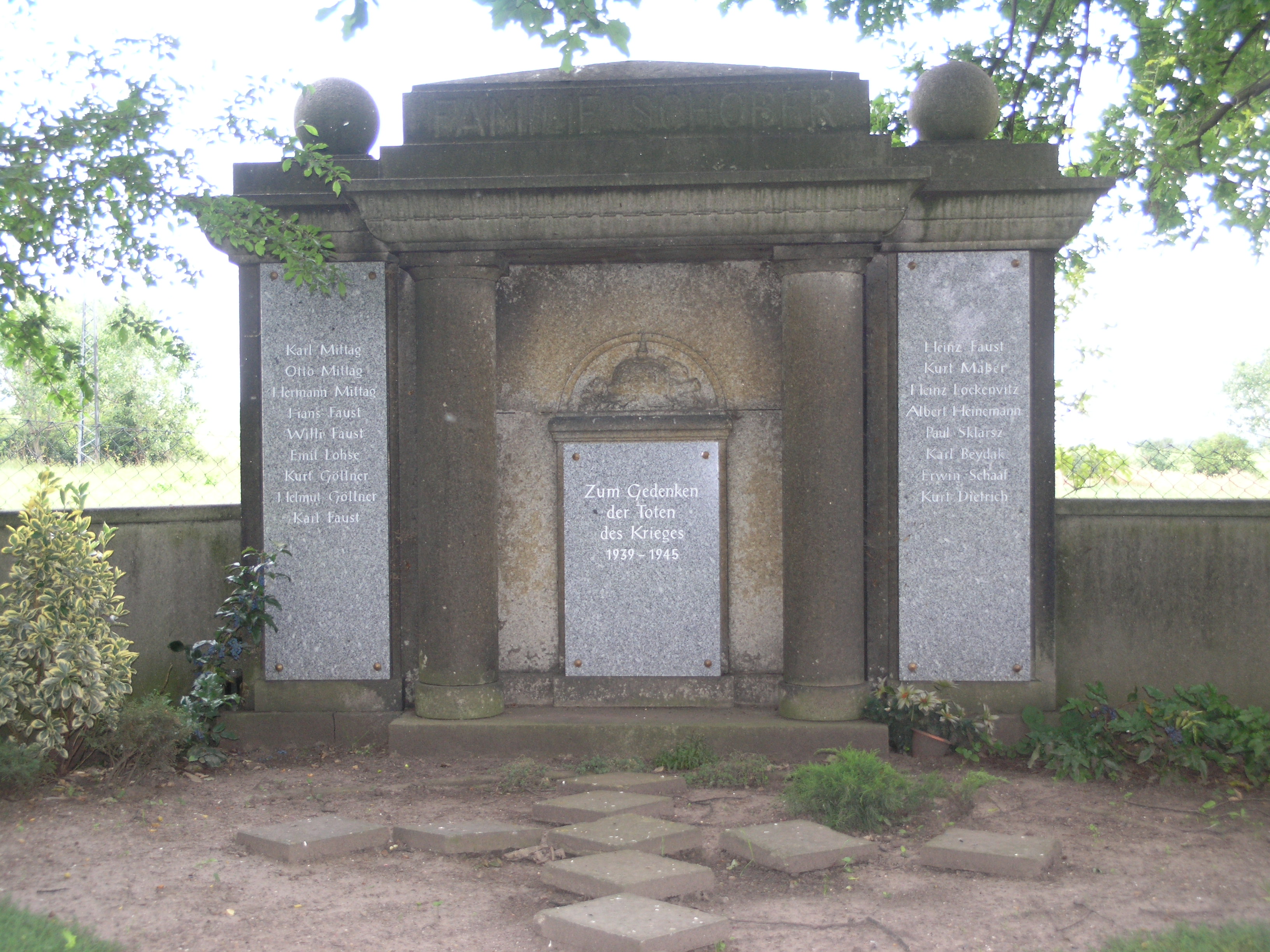Die Gedenktafeln der zu Ehren der Gefallen aus dem 2. Weltkrieges, wurden am Familiengrab der Familie Schober angebracht.